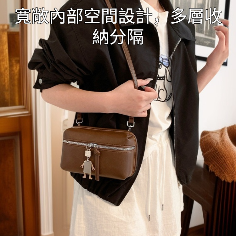 ● 寬敞內部空間設計,多層收納分隔,輕鬆整理手機、錢包、化妝品等隨身物品。